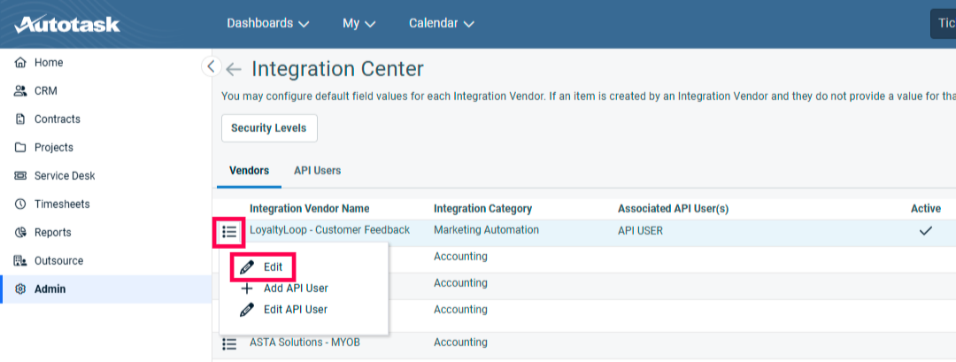 Autotask inbound data integration. If you have not created API user credentials for the LoyaltyLoop integrations yet, you can