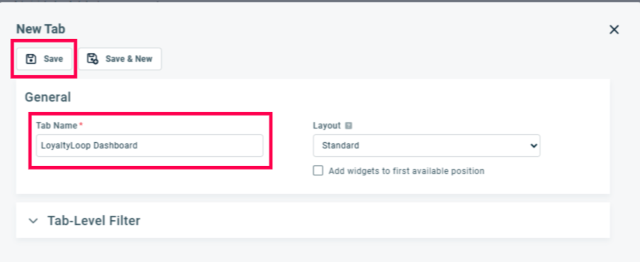 Name your Tab and then Save.