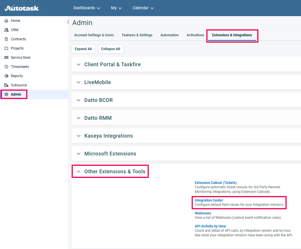 From the Admin Menu, select 'Extensions & Integrations'. Then, from the 'Other Extensions & Tools' tab select 'Integration Center'