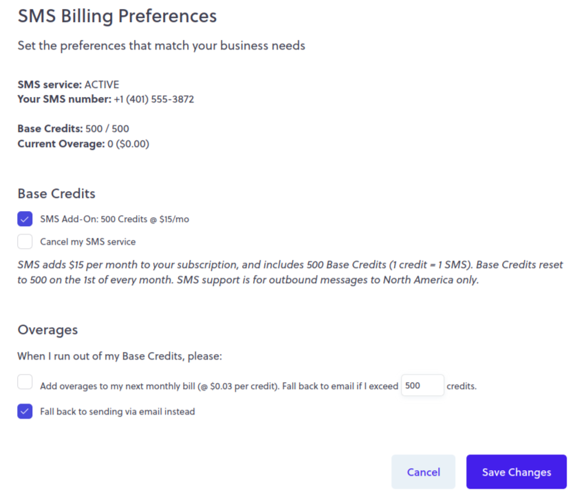 Confirm all your chosen settings, and click “Save Changes”. If you change your mind, check the “Cancel my SMS service” and then “Save Changes”.