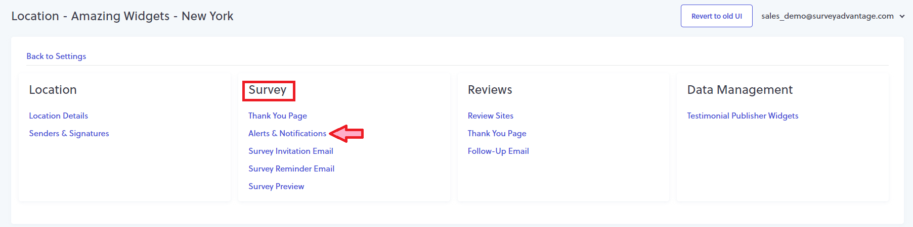 - Click "Alerts and Notifications" under the Survey section