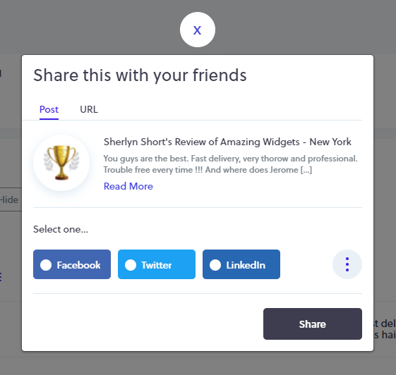 - Find the desired testimonial and click the share icon on the right.