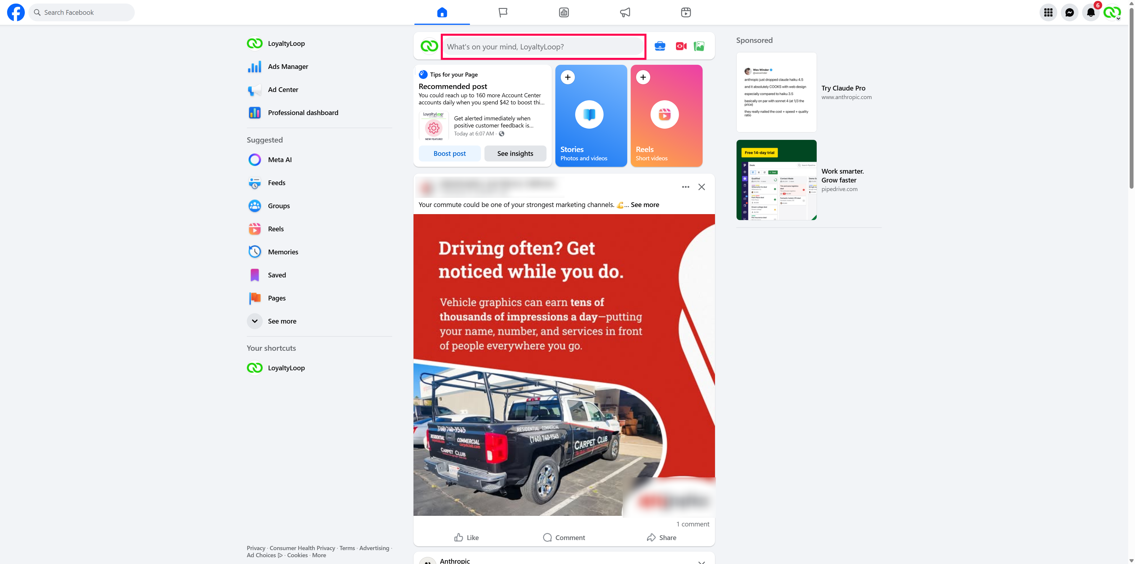 Issue 1: When sharing a customer testimonial from LoyaltyLoop to Facebook, the post appears on your personal Facebook profile instead of your business page.